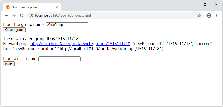 To create a group, execute a POST request on the groups resource on the url as follows, where, localhost is the server name: